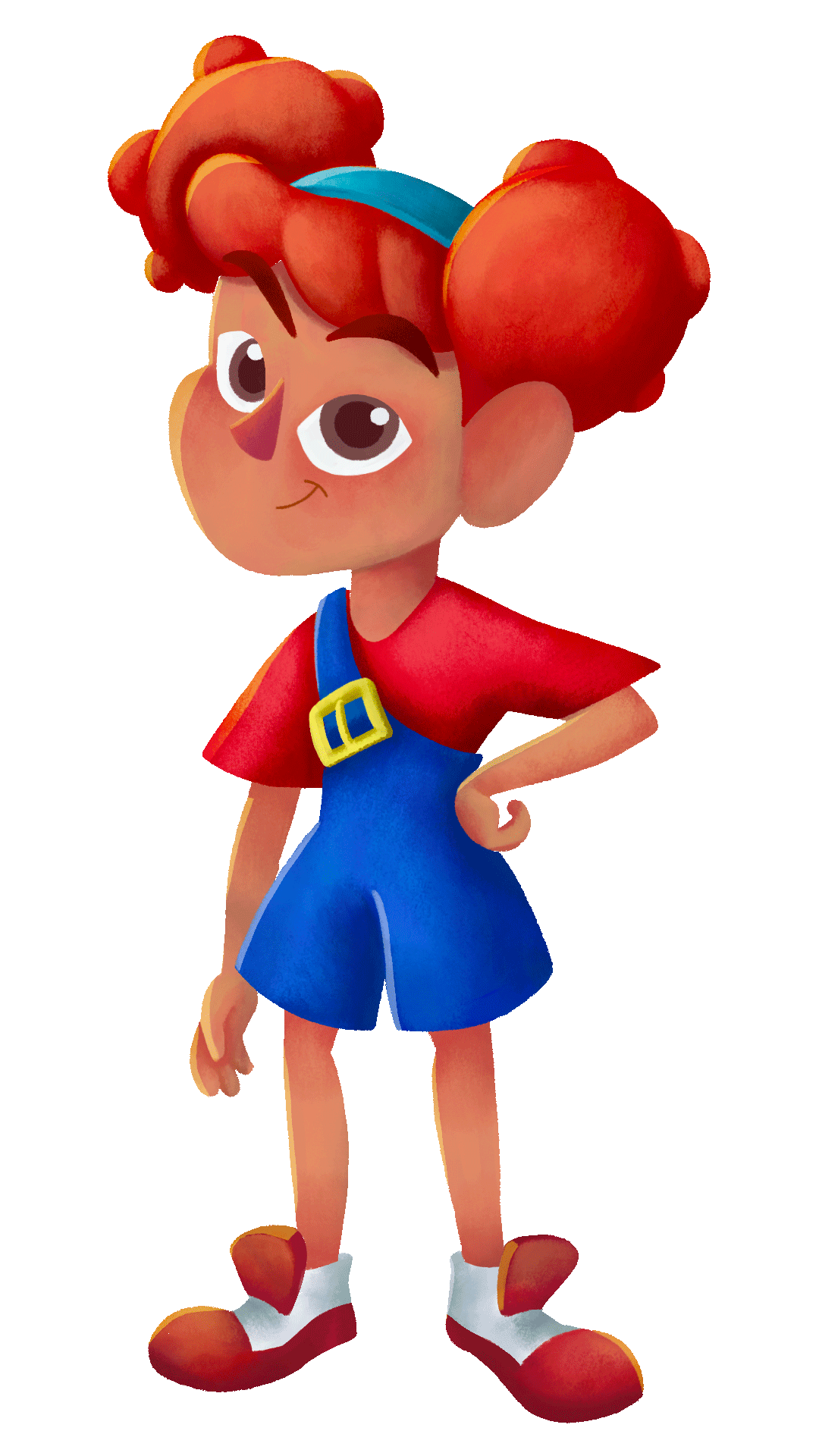 Il personaggio di Sofia si ispira all’abbigliamento pop degli anni ‘80. La palette colore si ispira direttamente al coordinato grafico del cliente Aurora, che ha manifestato questa richiesta. La sua acconciatura intende richiamare una personalità vispa e curiosa.